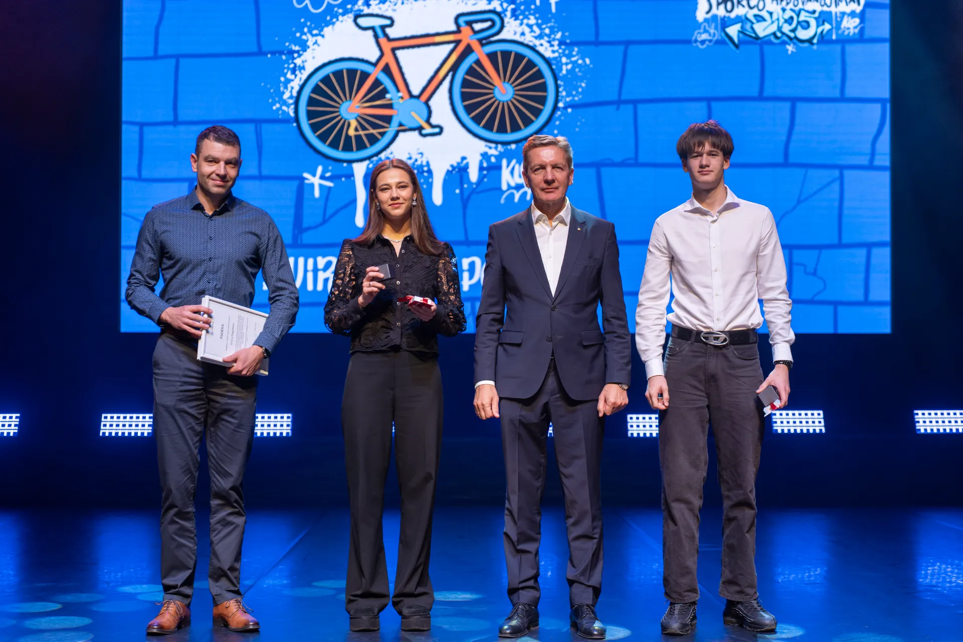 „Moksleiviai, treneriai, tėvai – tiek jūsų Klaipėdos moksleivių sporto apdovanojimuose dar nesu matęs. Labai džiaugiuosi. Ir galbūt svarbiausia ne tik jūsų aukščiausi pasiekimai, nors jais taip pat reikia džiaugtis, bet tai, kad jūs sportuojate, esate aktyvūs, lavinate ne tik savo fizinį kūną, bet ir dvasią. Jūs išmokstate kitaip gyventi gyvenimą, mokotės siekti tikslo. Todėl nuoširdžiai džiaugiuosi ir didžiuojuosi visais, kurie padėjo jums šio tikslo siekti“, – sakė miesto meras A. Vaitkus.
